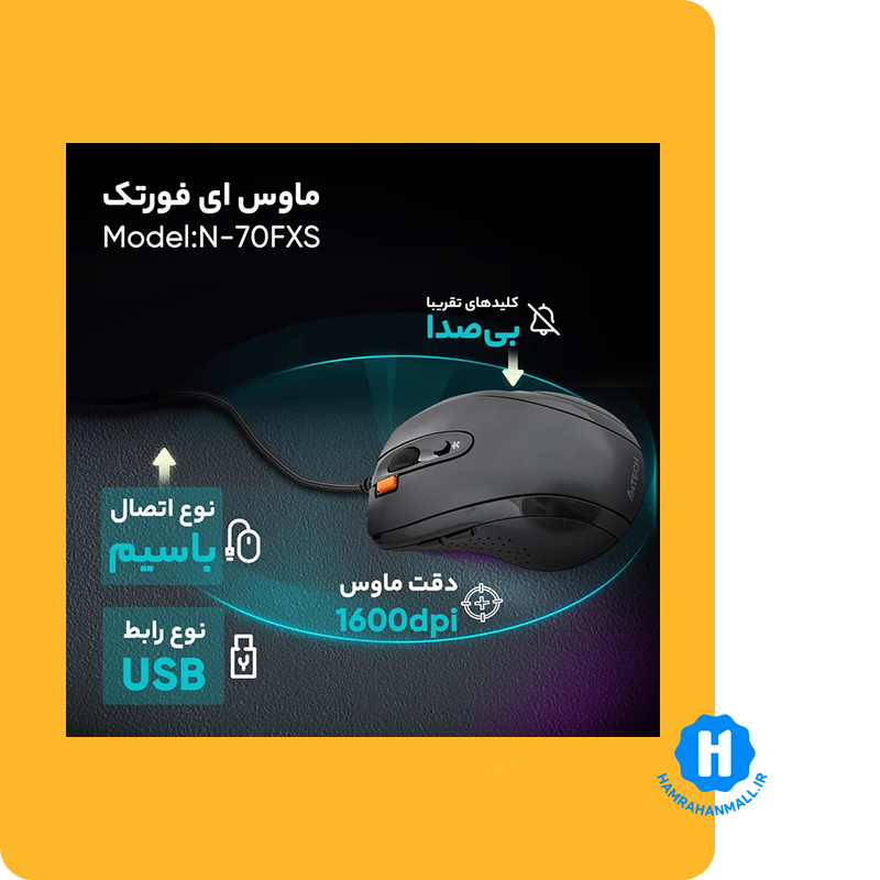 ماوس با سیم ای فورتک سایلنت مدل N-70FXS