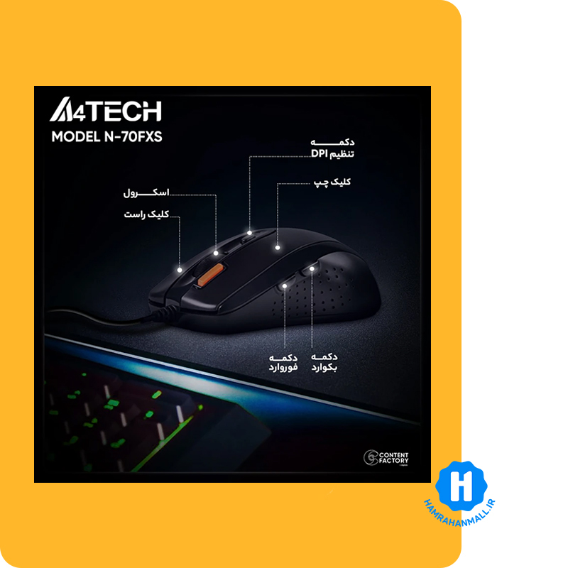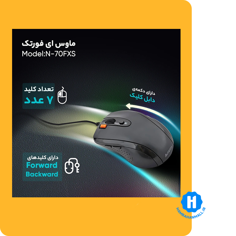 ای فورتک (A4TECH) یک شرکت تایوانی معتبر در زمینه تولید تجهیزات کامپیوتری و همچنین گیمینگ است که محصولاتش با استانداردهای جهانی سازگار هستند و در جهان طرفداران ویژهای دارند. ماوسای فورتک مدل N-70FXS یک ماوس بیسیم است که اتصال آن از طریق فرکانس 2.4 گیگاهرتزی انجام میشود. این اتصال بیسیم به کاربر این امکان را میدهد که بدون هیچ محدودیتی از فاصله دور هم از ماوس استفاده کند. برای شارژ کردن ماوس ای فورتک مدل N-70FXS، ابتدا کابل شارژر USB به پورت مخصوص ماوس و سپس به پورت USB کامپیوتر یا لپتاپ متصل میشود. مدت زمان لازم برای شارژ کامل این ماوس حدود 2 تا 3 ساعت است. این ماوس با ابعاد متناسب خود، امکان استفاده راحت و بدون مشکل برای افرادی که دستان بزرگی دارند فراهم میکند. همچنین با این امکانات، این ماوس مناسب برای استفاده طولانی مدت بدون ایجاد خستگی و استرس برای دست است. ماوس ای فورتک دارای قابلیت تنظیم DPI است که به کاربران اجازه میدهد تا دقت مورد نیاز خود را برای حرکت ماوس انتخاب کنند. برای تنظیم رنگ و نور ماوس، شما میتوانید از نرمافزار اختصاصی ای فورتک استفاده کنید. این نرمافزار به شما امکان میدهد تا انواع مختلفی از الگوها و رنگها را برای نور RGB ماوس انتخاب کرده و تنظیم کنید. همچنین، با استفاده از این نرمافزار، میتوانید شدت نور را نیز تنظیم کنید تا بهترین تجربه استفاده را داشته باشید. با استفاده از تنظیمات مخصوص، میتوانید به راحتی نور ماوس را خاموش کرده و به صورت معمولی از ماوس استفاده کنید.