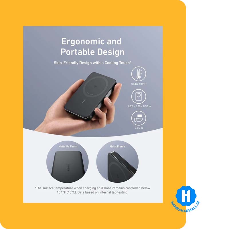 معرفی محصول: پاوربانک Anker MagGo مدل A1664H11 با ظرفیت ۱۰ هزار میلیآمپر ساعت و طراحی باریکتر، امکان شارژ بیسیم مغناطیسی و شارژ سیمی سریع را به صورت همزمان فراهم میکند. این محصول با کیفیت ساخت بالا و حفاظت چندگانه، انتخابی مناسب برای کاربران حرفهای و روزمره است.ظرفیت: ۱۰٬۰۰۰ میلیآمپر ساعت نوع شارژ: شارژ بیسیم مغناطیسی + شارژ سیمی توان خروجی وایرلس: حداکثر ۱۵ وات توان خروجی USB-C: حداکثر ۲۰ وات تعداد درگاهها: ۱ عدد USB-C نوع باتری: لیتیوم-یون نمایشگر: نشانگر LED میزان شارژ ابعاد: حدود ۱۰.۵ × ۶.۶ × ۱.۹ سانتیمتر وزن: حدود ۲۰۷ گرم سازگاری: آیفونهای سری ۱۲ به بعد و دستگاههای دارای Qi Wireless ورودی برق: USB-C (با پشتیبانی از شارژ سریع) استانداردها: CE, FCC, RoHS سیستمهای محافظتی: محافظت در برابر گرمای بیش از حد، شارژ اضافه، اتصال کوتاه