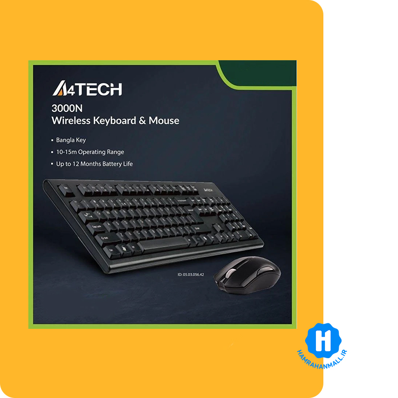 کیبورد و ماوس «3000N» ساخته شده توسط شرکت «ای فورتک» است که این محصول به صورت بی سیم طراحی شده و برد مفید آن 10 متر و به راحتی در تمامی سطوح قابل استفاده است. تعداد کلید های این کیبورد 104 است. این محصول دارای تایمر برای خاموش شدن خودکار دارد و بسیار کم مصرف است. مناسب برای اداره، منزل، اورگان های دولتی و…. بوده و بسیر سبک و کم حجم است. ماوس این محصول دارای طراحی ارگونومیک بوده و دارای 3 کلید است. برد مفید این ماوس تا 15 متر بوده و به راحتی در تمام سطوح شیشه ای، سرامیکی و…. و بدون نیاز به پد ماوس قابل استفاده است. میزان دقت این ماوس 1000DPI است