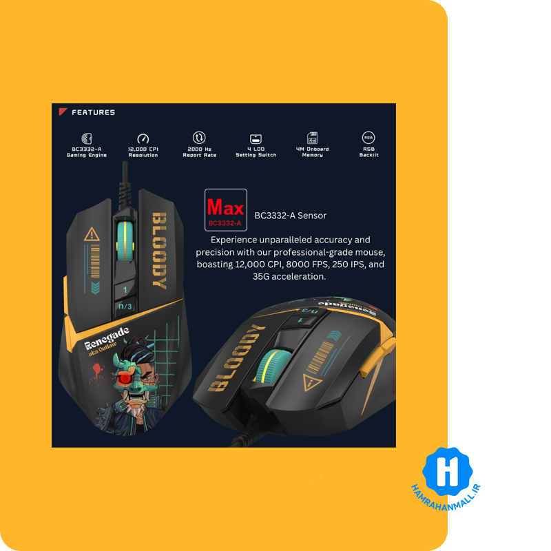 ماوس گیمینگ ای فورتک بلادی مدل W63MAX یک گزینه فوقالعاده برای گیمرهاست که به دنبال عملکرد بالا و دقت بینظیر در بازیهای خود هستند. این ماوس با قابلیت تنظیم دقت بین 100 تا 12,000 CPI، به شما این امکان را میدهد که حساسیت ماوس را بر اساس نیازهای خاص خود تنظیم کنید. این ویژگی به ویژه در بازیهای رقابتی که دقت و سرعت عمل بسیار مهم است، میتواند تفاوت زیادی ایجاد کند.