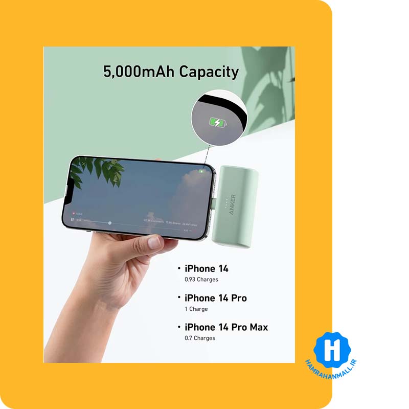 پاوربانک سوکت لایتنینگ انکر مدل Anker A1645H11 ظرفیت نامی آن 5 هزار میلی آمپر می باشد. با استفاده از این پاوربانک شما می توانید آیفون سری 14 را حدود 1 بار شارژ کنید. این پاوربانک مناسب موبایل هایی است که درگاه لایتنینگ دارد. زیرا این پاوربانک یک سوکت لایتنینگ دارد که می توانید بدون کابل از آن استفاده نمایید.