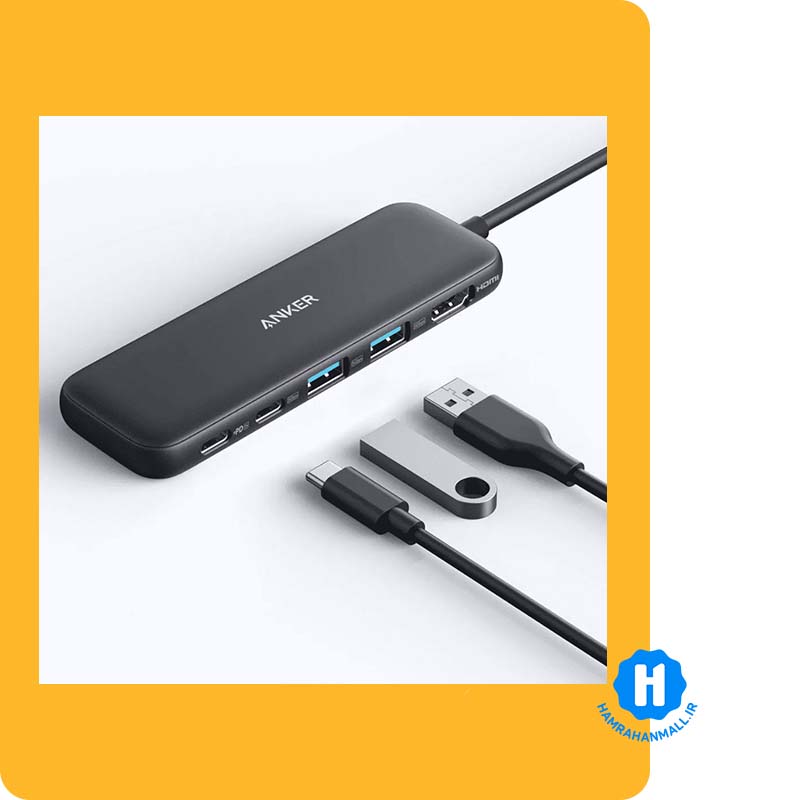 این هاب، به یک پورت HDMI با کیفیت 4K، یک پورت USB-C با سرعت ۵ گیگابیت بر ثانیه جهت انتقال اطلاعات، دو پورت USB-A با سرعت ۵ گیگابیت بر ثانیه و یک پورت ۱۰۰ وات PD-IN مجهز است.