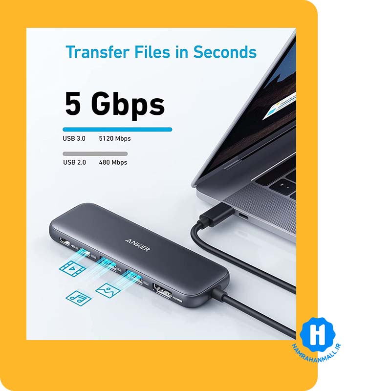 با سرعت حداکثر ۵ گیگابیت بر ثانیه از طریق پورتهای اطلاعاتی USB-C و USB-A، فایلهای ضروری را به سرعت به لپ تاپ خود منتقل و یا از آن خارج کنید.