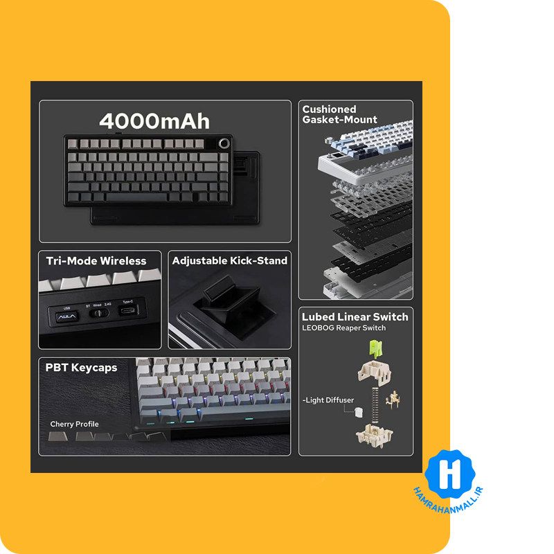 اگر به دنبال کیبوردی حرفهای هستید که ترکیبی از **فشردگی، شخصیسازی و هوشمندی** باشد، AULA F75 MAX دقیقاً همان چیزی است که نیاز دارید. این کیبورد مکانیکی بیسیم با صفحه نمایش رنگی TFT، دسته تنظیم حجم (Knob)، طراحی Gasket Mount و قابلیت تعویض سوئیچ بدون لحیمکاری (Hot Swap)، مرز بین گیمینگ و محیط کار را از بین برده است.