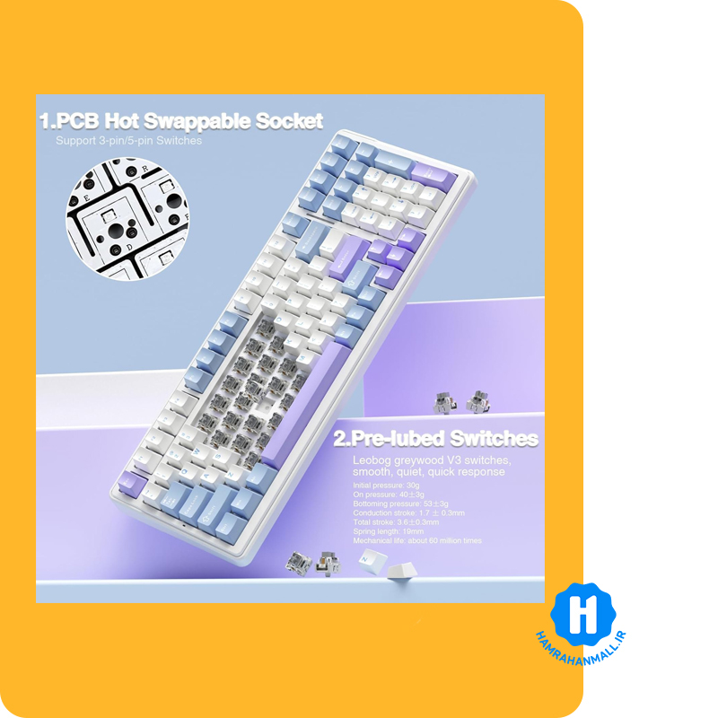 کیبورد مجهز به سوئیچهای مکانیکال حرفهای است که با فیدبک دقیق و صدای لذتبخش، تجربهی بازی و تایپ را به سطحی بالاتر میبرد. از همه مهمتر، میتونی بهراحتی سوئیچها رو تعویض کنی و کیبوردت رو شخصیسازی کنی!