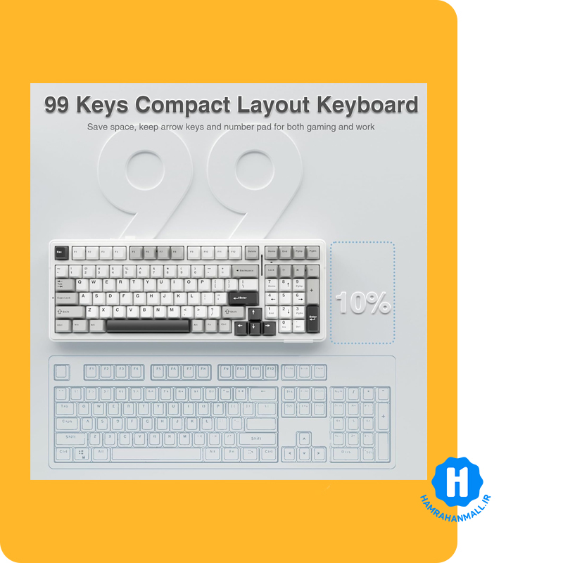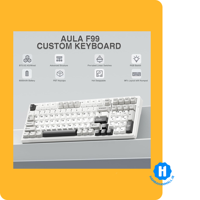 کیبورد گیمینگ سیم دار ، وایرلس و بلوتوثی آئولا مدل AULA F99 (رنگ کلید سفید / طوسی / مشکی ) سوئیچ Yelow