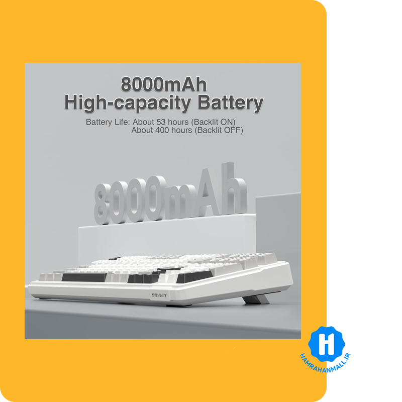 داخل کیبورد یک باتری بسیار بزرگ ۸۰۰۰ میلیآمپری قرار گرفته است که: