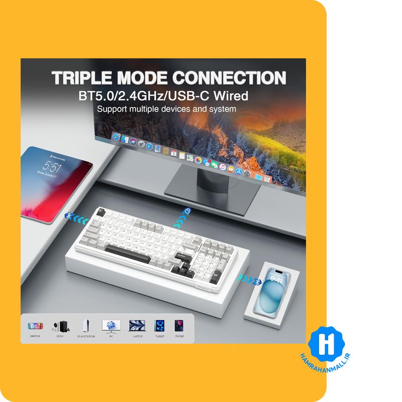 این کیبورد قابلیت اتصال همزمان به پنج دستگاه مختلف را دارد و با میانبرهای FN بهسرعت بین آنها جابهجا میشود. گزینهای فوقالعاده برای کاربران لپتاپ، PC، موبایل، تبلت و حتی کنسولهای گیم.