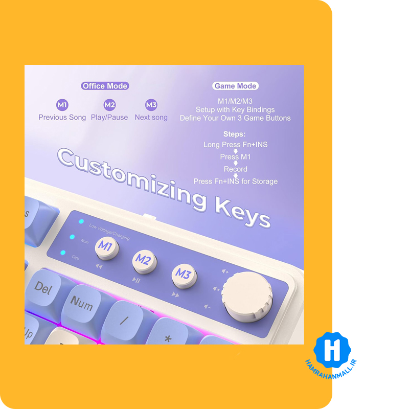 کلیدهای قابل برنامهریزی: وجود سه کلید M1، M2، M3 به کاربر اجازه میدهد ماکروها، توابع ترکیبی و تنظیمات شخصی را ذخیره کند.