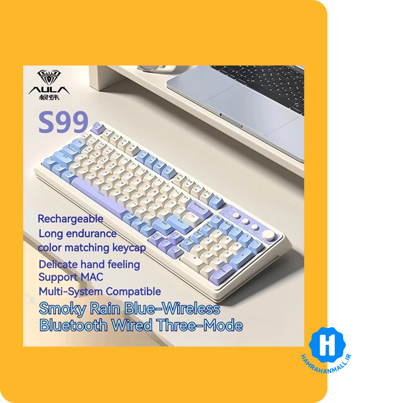 کیبورد 3 حالته مکانیکال AULA S99 (رنگ کلید کرم / آبی / بنفش ) سوییچ membrane