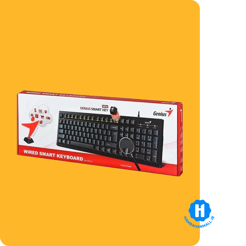 کیبورد باسیم جنیوس Smart KB-101 با حروف فارسی محصول فوق العاده ای است که در آن، 105 عدد کلید با فاصله استاندارد کنار هم قرار گرفته اند تا عمل تایپ کردن به راحتی و با سرعت زیاد انجام شود. این کیبورد تنها از طریق پورت usb با رایانه ارتباط برقرار می کند و اتصال آن از نوع سیمی است. کیبورد جنیوس مدل KB-101 از سیستم عامل های Windows 10, 8.1, 8, 7 – Mac OS X 10.8 or later پشتیبانی می کند.