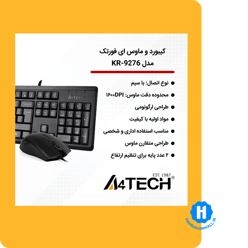 مزایای کلیدی کیبورد و ماوس ای فورتک KR‑9276
