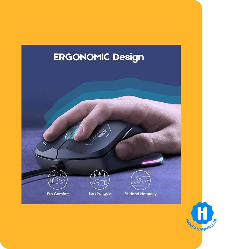 این موس گیمینگ فوق العاده و اقتصادی از برند اونیکوما، ترکیبی از طراحی ارگونومیک و زیبایی بصری را به ارمغان می آورد. در قسمت انتهایی موس و اسکرول، نورپردازی RGB به کار رفته که حس قدرت و هیجان گیمینگ را به کاربر منتقل میکند. این نورپردازی با تغییر رنگهای جذاب، تجربهای متفاوت و پویا را برای شما فراهم میکند. در سمت راست موس، دکمه های اضافی طراحی شده اند که میتوانید از آنها به عنوان میانبرهای کاربردی در بازیها استفاده کنید. همچنین، یک دکمه در وسط موس قرار دارد که به شما امکان تنظیم DPI و تغییر رنگهای RGB را میدهد. این موس با چهار سطح DPI مختلف (1200، 1600، 2400، 3600) عرضه میشود که هر کدام با رنگ های متفاوتی نمایش داده میشوند، بنابراین میتوانید سرعت و دقت موس را به دلخواه تنظیم کنید. سیم این موس با طول 1.5 متر، از جنس مقاوم ساخته شده و نیازهای شما را به خوبی برطرف میکند. سنسور NST603EP این موس، دقت و عملکرد بینظیری را ارائه میدهد که برای گیمرهای حرفه ای بسیار مهم است. بدنه CW917 ضد تعریق طراحی شده تا در طول بازیهای طولانی، دست شما خشک و راحت بماند و از لغزش موس جلوگیری کند. این ویژگی برای گیمرهایی که بازی های شوتر بازی میکنند، اهمیت ویژه ای دارد. این موس گیمینگ اقتصادی، در رنج قیمت خود و حتی کمی بالاتر، یکی از بهترین انتخاب هاست. با استفاده از این موس، شما تجربهای لذت بخش و حرفه ای از بازی های خود خواهید داشت و قطعاً از کار کردن با آن لذت خواهید برد. این موس نه تنها از نظر عملکرد، بلکه از نظر طراحی و راحتی نیز شما را شگفت زده خواهد کرد.
