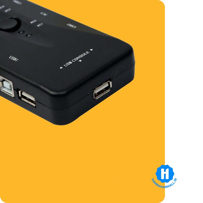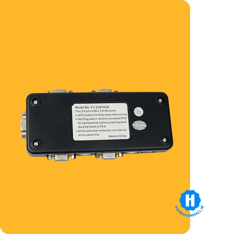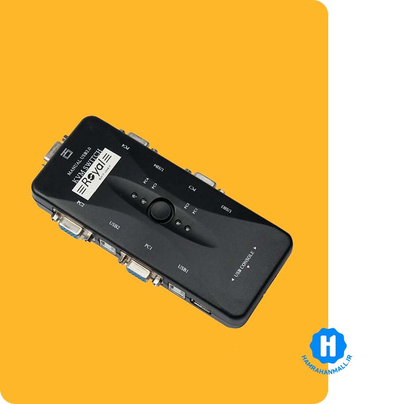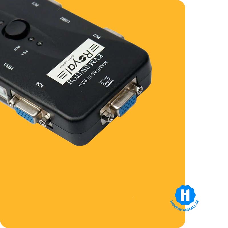 اتصال چند کامپیوتر به یک مانیتور با استفاده از روش های مختلف صورت می گیرد که از پرکاربردترین این روش ها استفاده از سوییچ های KVM می باشد. با استفاده از نوع سوییچ می توانید بسته به تعداد پورت های آن چند سیستم را به یک مانیتور، یک موس و یک کیبورد متصل کرده و از آن ها استفاده کنید. سوییچ KVM-4UK محصولی از کمپانی رویال بوده که با داشتن 4 پورت PC، امکان متصل کردن چهار کیس را به یک مانیتور برای کاربر فراهم کرده است. کمپانی رویال 4 چراغ LED روی این محصول تعبیه کرده که کاربر را از اتصال درست سیستم ها به سوییچ مطلع می سازد و وجود یک دکمه فیزیکی روی بدنه محصول سبب شده سوییچ سیستم ها به یکدیگر بصورت دستی نیز قابل انجام باشد. همچنین این سوییچ با تمام سیستم عامل های موجود در بازار سازگاری داشته و از حداکثر رزولوشن 1440×1920 پیکسل پشتیبانی می کند. لازم به ذکر است این محصول از Plug and Play پشتیبانی کرده و برای نصب و راه اندازی آن نیاز به هیچ گونه درایو و یا نرم افزار خاصی نیست.