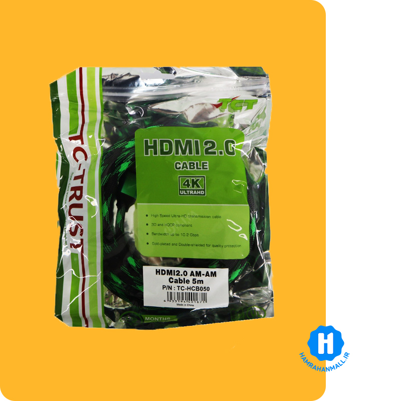 کابل HDMI تی سی تی یک رابط با سرعت انتقال و کیفیت ساخت بالاست که قابلیت پخش تصاویر 3 بُعدی و پشتیبانی از وضوح تصویر 4K را دارد، این کابل برای طیف وسیعی از دستگاه هایی که به نمایشگر های HD متصل میشوند.مانند کنسول های بازی / رایانه های رومیزی / همراه DVD Player / DVR وغیره مناسب میباشد.